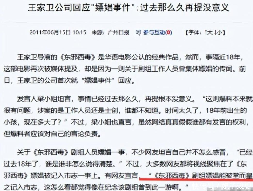 王家卫大导演早年在拍戏的时候直接领着三十个人“集体开嫖”,可笑的是被抓了,并且由于事情影响太大被写进了当地的市志里,一直记录在册。