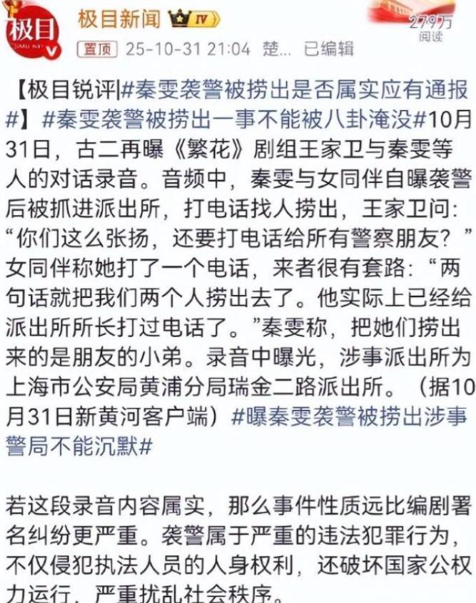 但这些也都不是最夸张的,最夸张的是秦雯很高傲的说打“帽子叔叔”的是她,并且还在被抓进局子后很快就放了出来。